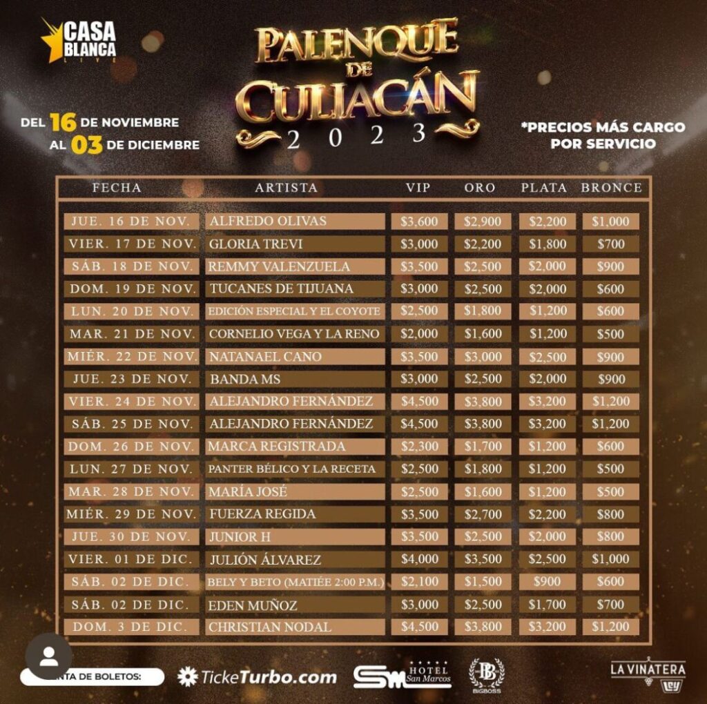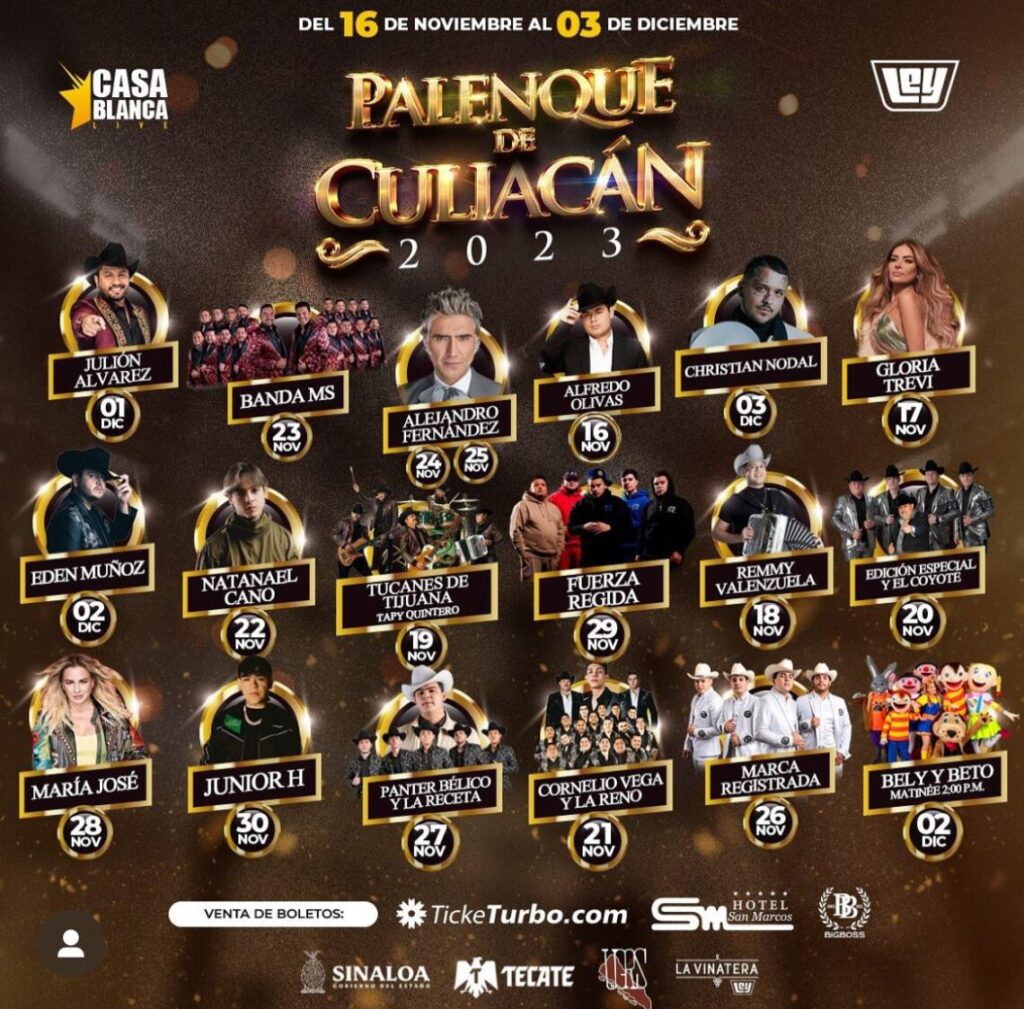 Thank you for reading this post, don't forget to subscribe!Culiacán, Sin.- El Palenque Culiacán dió a conocer la cartelera que engalanará las festividades de la Feria Ganadera 2023. Con un elenco de lujo tendrán la participación de varios artistas de talla internacional.