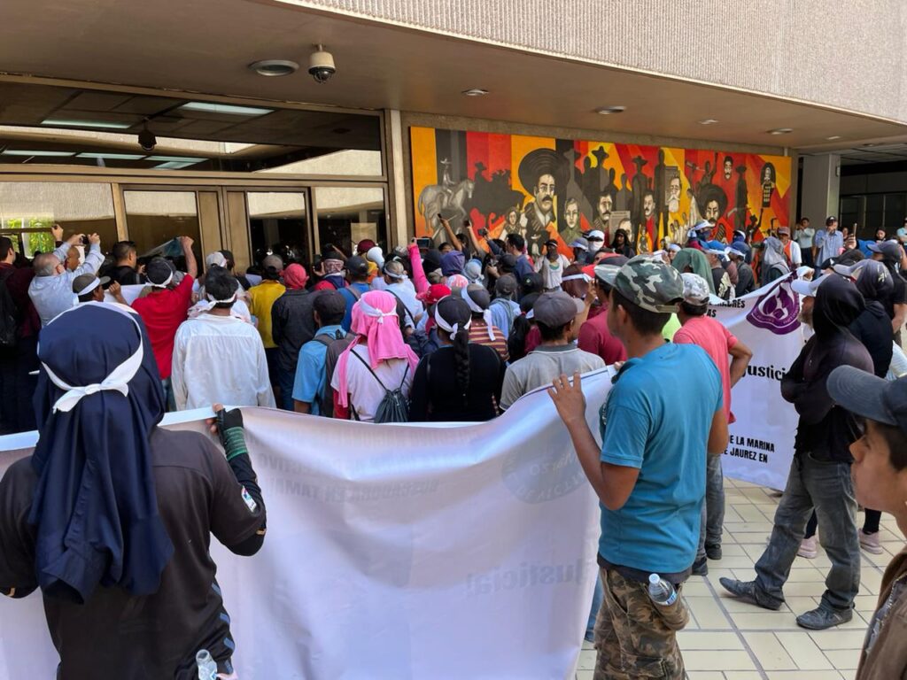 Los manifestantes exigen justicia por los delitos que se les acusa a los marinos y exigen su salida de la sindicatura de Villa Juárez. Para dar su testimonio, un joven que quedó en silla de ruedas tras ser presuntamente golpeado y baleado en la cabeza por parte de los marinos, sobrevivió para contarlo.