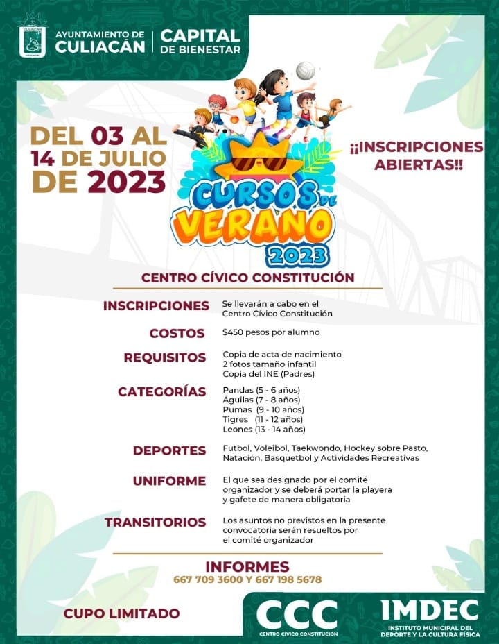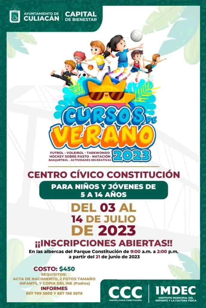 Thank you for reading this post, don't forget to subscribe!Culiacán, Sin.- El Ayuntamiento de Culiacán a través del Instituto Municipal del Deporte y la Cultura Física, iniciará este miércoles las inscripciones para los Cursos de Verano 2023, que se llevarán a cabo en las instalaciones del Centro Cívico Constitución.